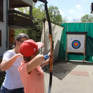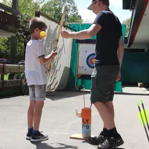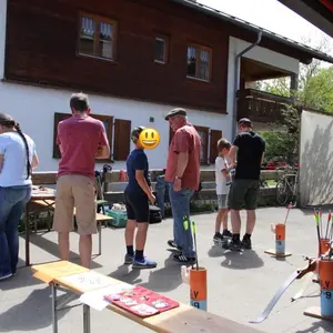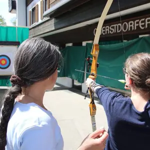 Dabei konnte Bogenschießen mitten im Ort ausprobiert werden. Ziel war es das Ergebnis von der Skispringerin Katharina Althaus zu übertreffen.